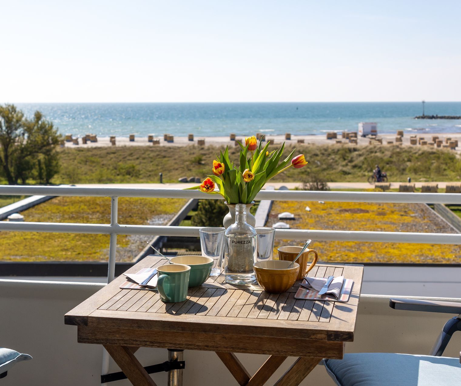 Auf den schönen Balkonstühlen genießen Sie Ihr Frühstück, Ihren Nespresso oder ein Glas Wein am Abend. Auf dem Balkon erwartet Sie eine harmonische Sitzgruppe.